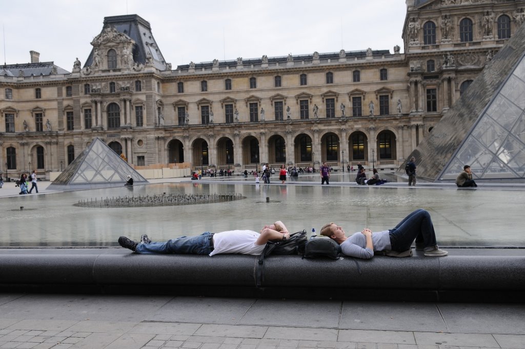 Paris’te gezinti, Louvre Müzesi, Banu ve Çınar (7 Ekim 2009)