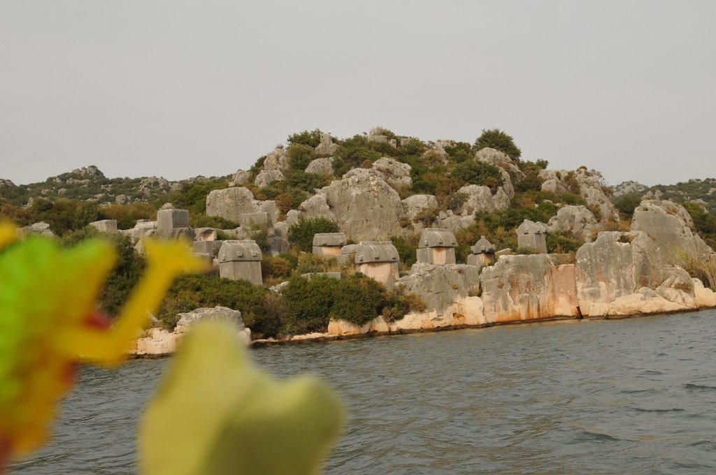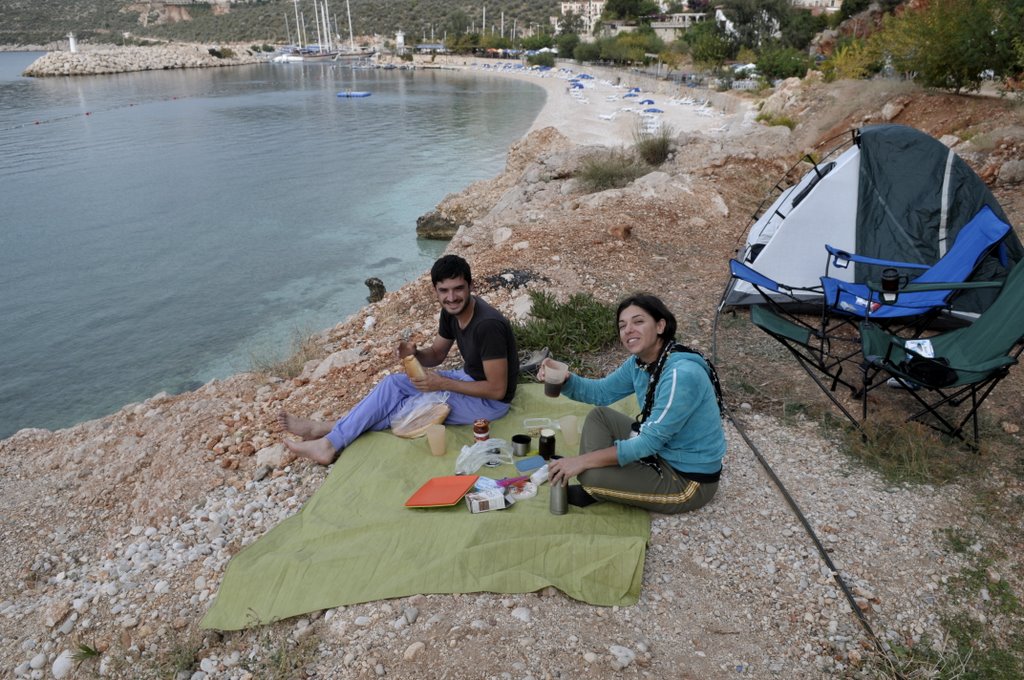 Kalkan’dan Kekova Kale Köy’e doğru giderken Yolda rastladığımız Mehmet (Demirörs) Hocamızın Kaş’taki evinin bahçesinde kamp kurduk, afiyetle gündüz yakaladığı balıkları miğdeye indirdik. (25 Ekim 2009)