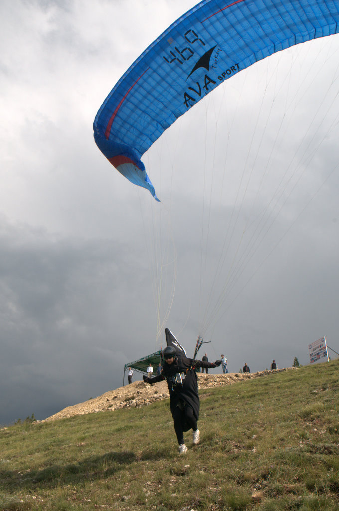 Bayramören’deki yarış, ilk günün hava koşulları yüzünden iptal olsa da, hevesli pilotlar yine de kaldıkları yere uçarak gittiler :) (30 Haziran 2010)