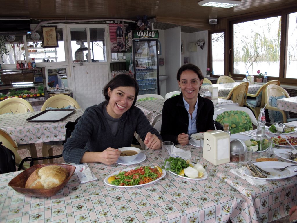 Amira ve Ravi ile İznik’te gezindik, Ravi’yi Canakkaleye yollayıp biz de Liman’da balık yemeğe gittik ki kimleri görelim: Gülçin ve Tarık ve de arkadaşları . (26 Aralık 2010)